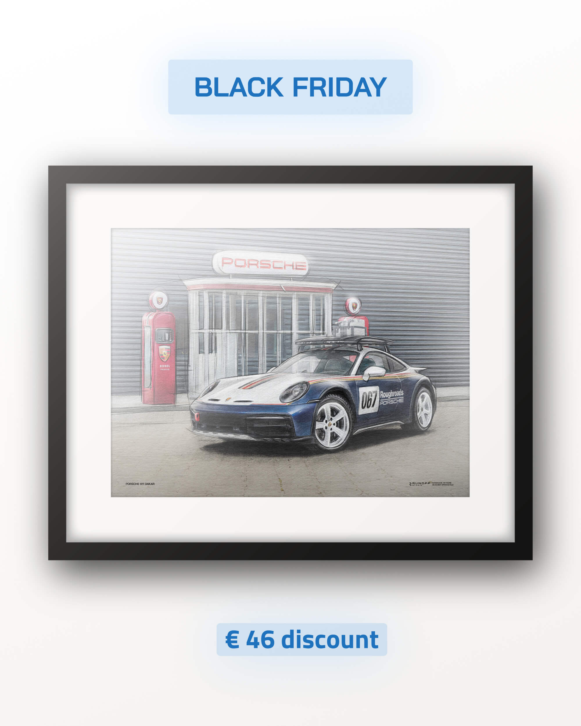 Yes, that’s what I do! The process is really simple. You send me a few photos of your car, so we can find the best way to capture it. I create a composition sketch to show you what the artwork will look like. After your approval, I start drawing your artwork by hand. Once it’s done, I can frame it for you and safely ship it to your home!